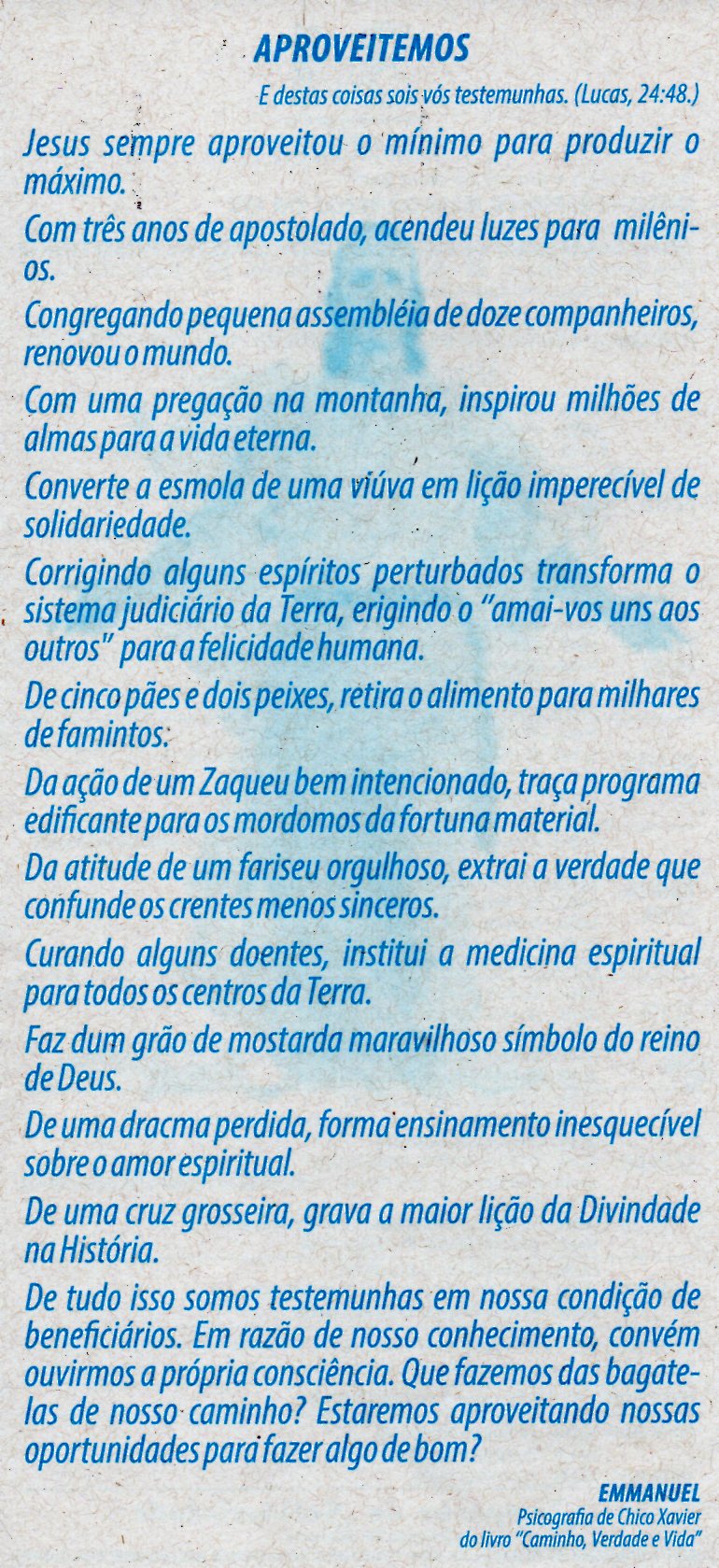 Aproveitemos – Mensagem – Emmanuel Psicografia de Chico Xavier do livro Caminho, Verdade e Vida
